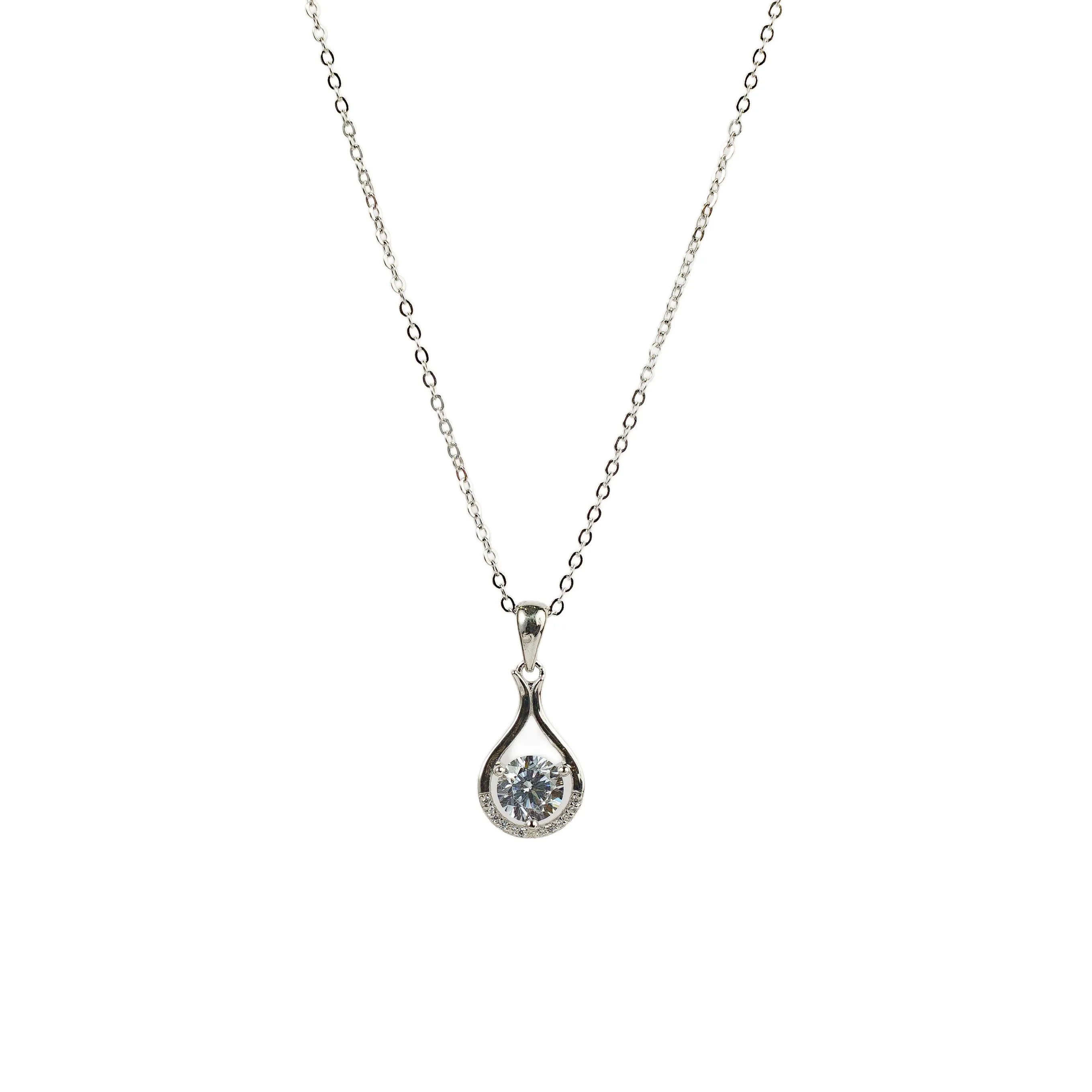 Rose gold pendant shaped like a dewdrop, sparkling with understated brilliance—perfect for everyday elegance.