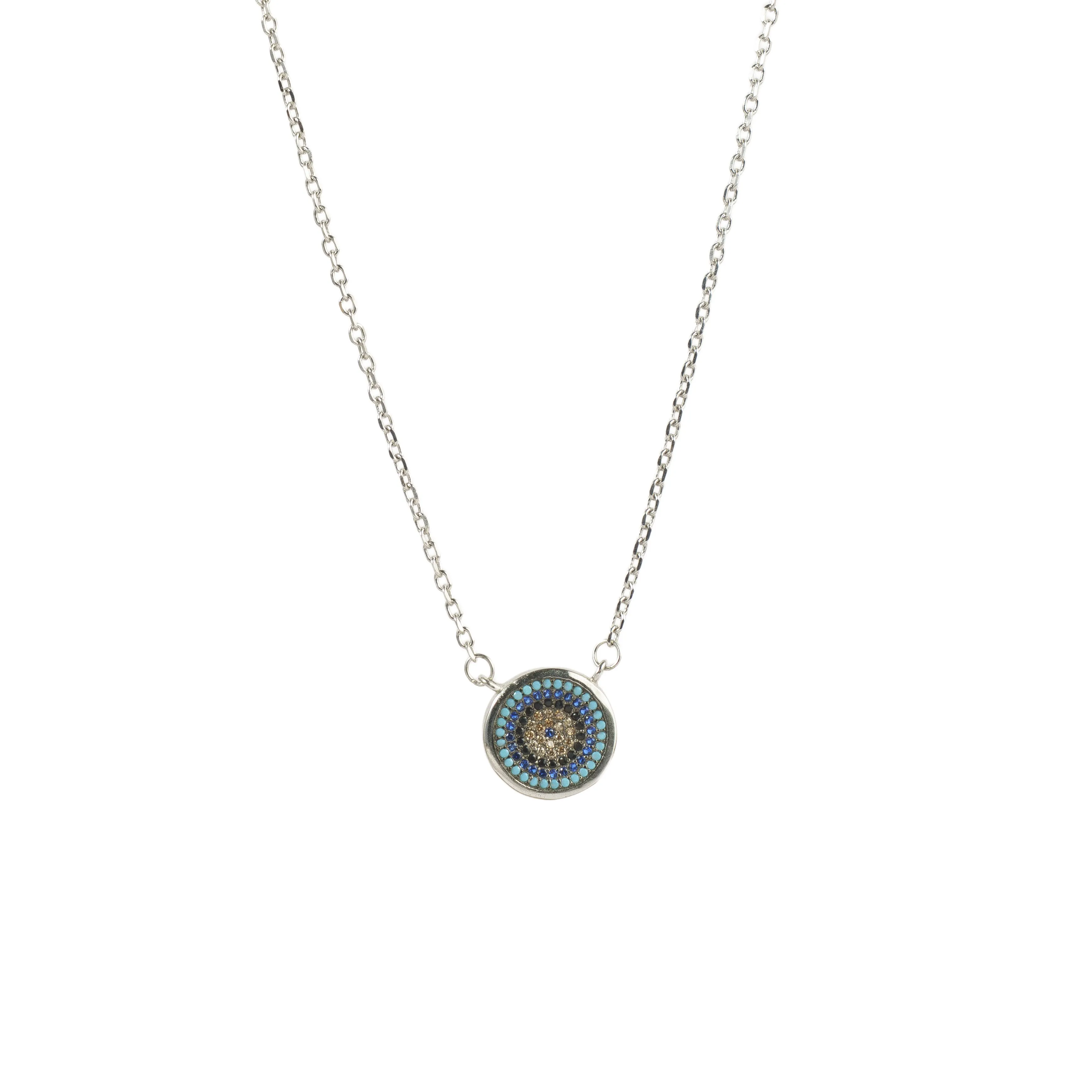 Protective evil eye pendant with a sparkling center. Fashionable and meaningful.