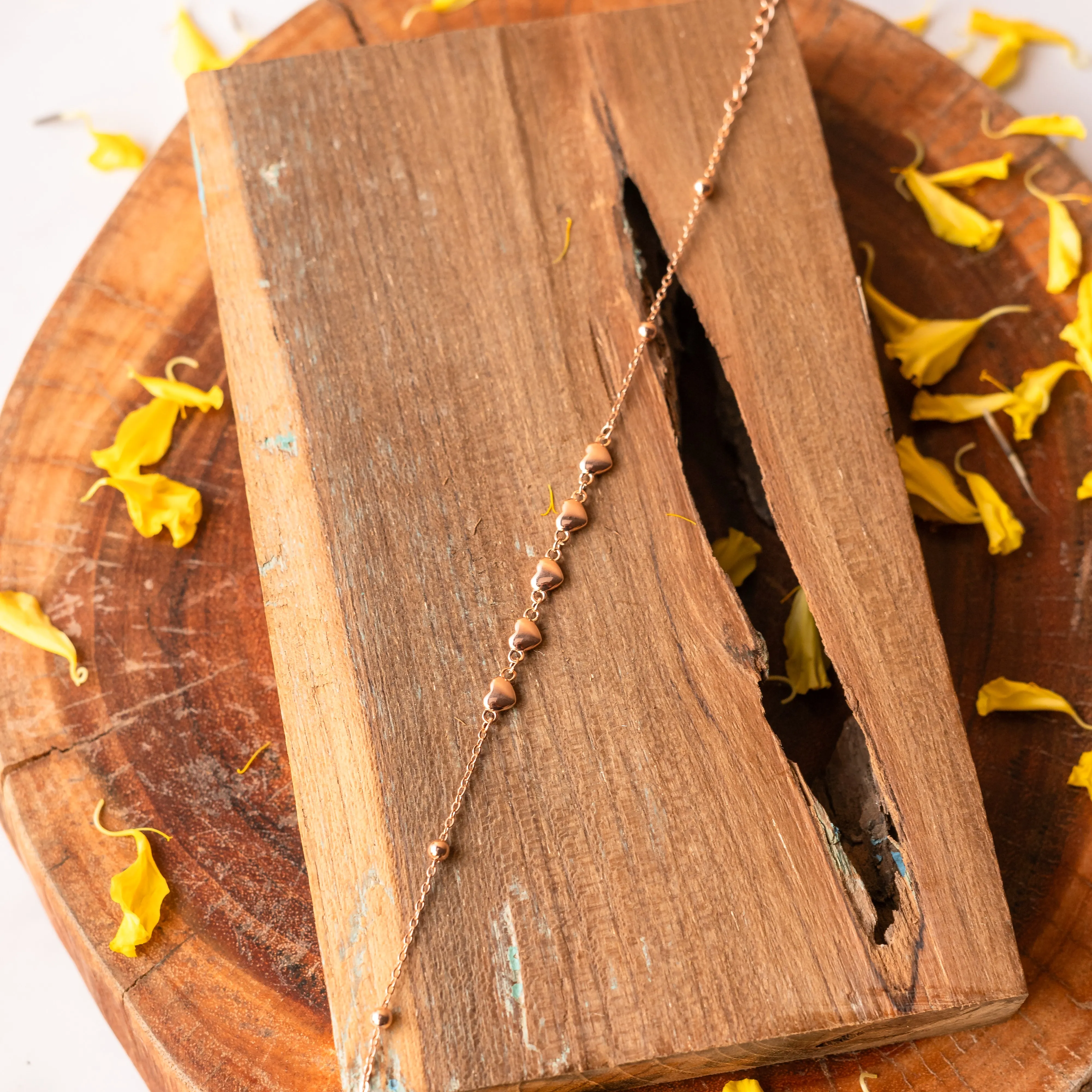 A delicate bracelet featuring rose-shaped charms. Romantic and feminine, ideal for adding softness to any wrist.