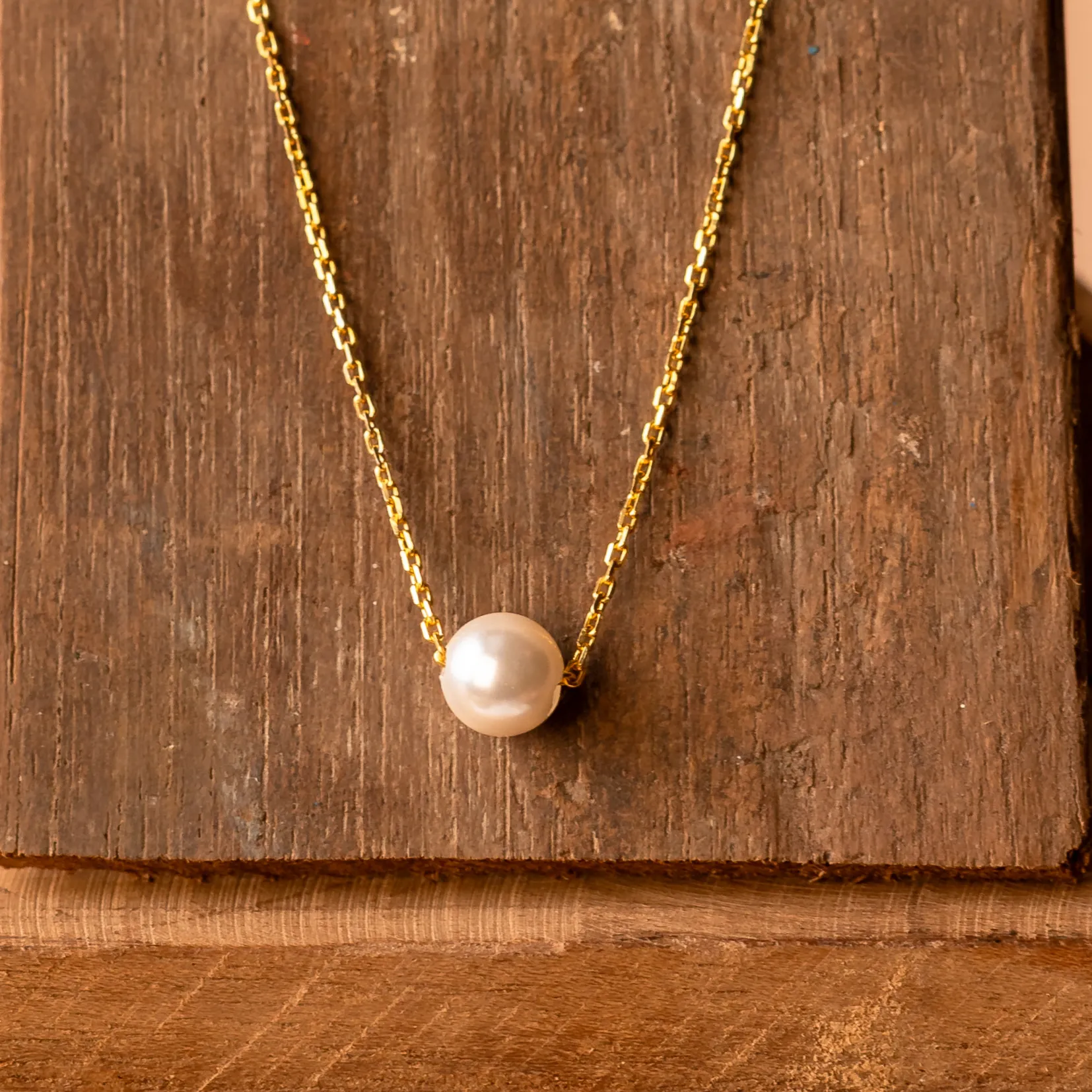 Elegant gold chain featuring a single luminous pearl—essential classic.