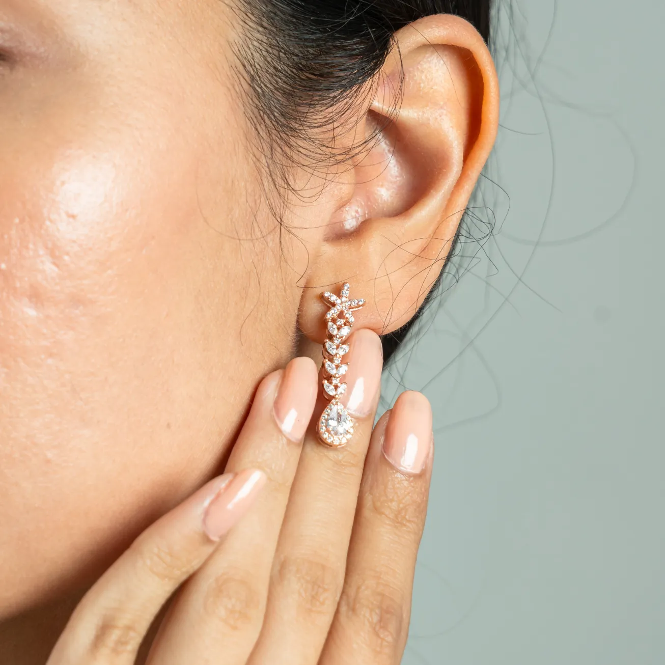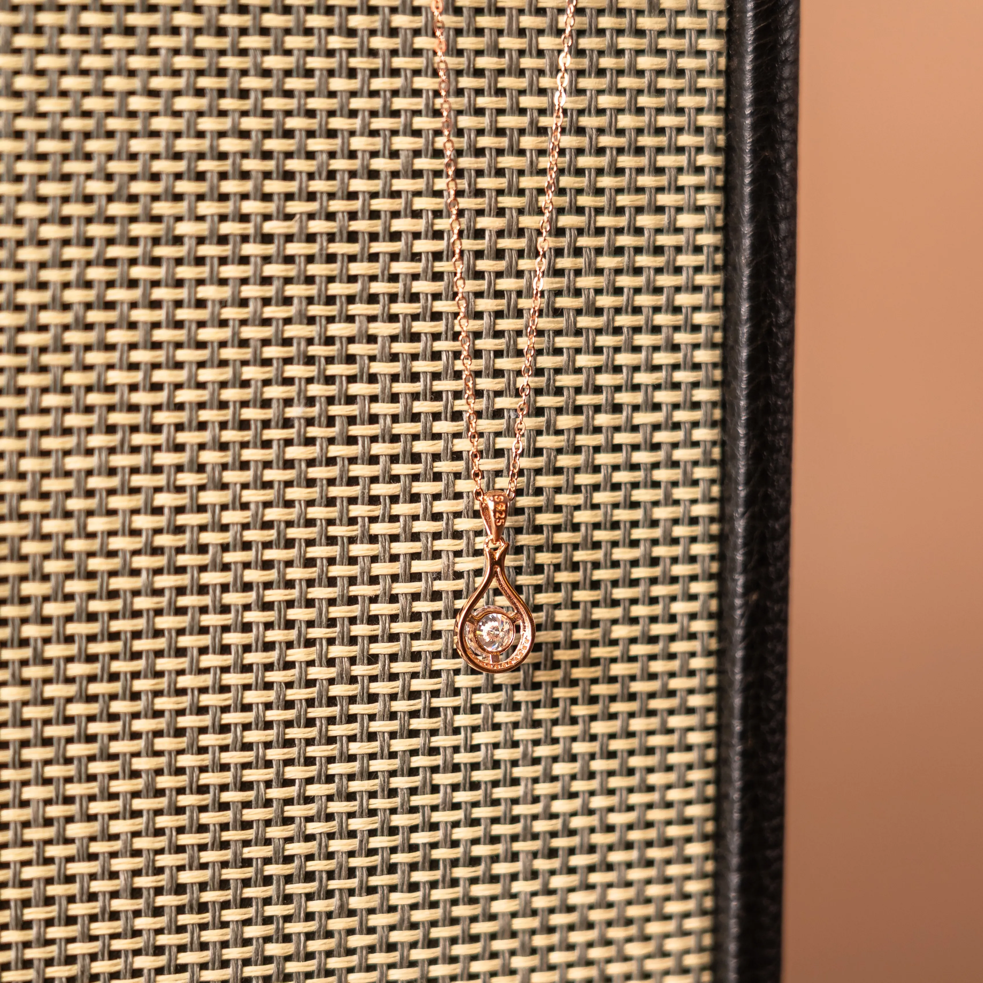 Rose gold pendant shaped like a dewdrop, sparkling with understated brilliance—perfect for everyday elegance.